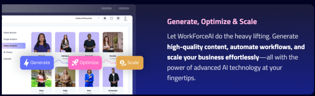 3. Generate, Optimize & Scale – Let WorkForceAI handle content creation, automate workflows, and help scale your business effortlessly.